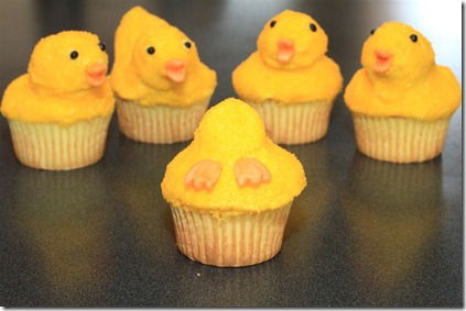 So I frost the cupcake, stick on the head (beak not included) and then the questionable tail…